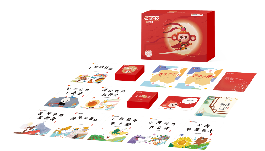 小猴语文分L1、L2和L3不同的等级。孩子跟着老师上一年的课程,授课形式是AI直播互动课堂,每年配齐足够的教具盒子、教材、绘本、字卡、桌游、点读笔等一系列的工具,帮助孩子和家庭更好做语文的学前教育。