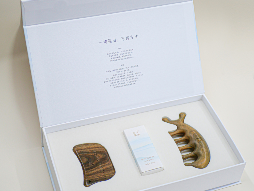 礼盒加入『一切福田,不离方寸』这一惜福的传统文化理念,流畅身体气机的同时,滋养精神。