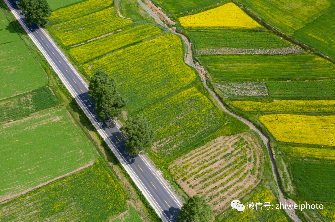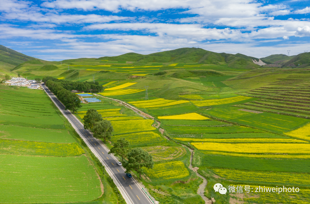 这里是乌鞘岭脚下的小镇,每年7月这里有着大面积的的油菜花盛开,在蓝天白云绿树的映衬下,这里就像一幅油画一样,在无人机的上帝视角下显得格外动人。
