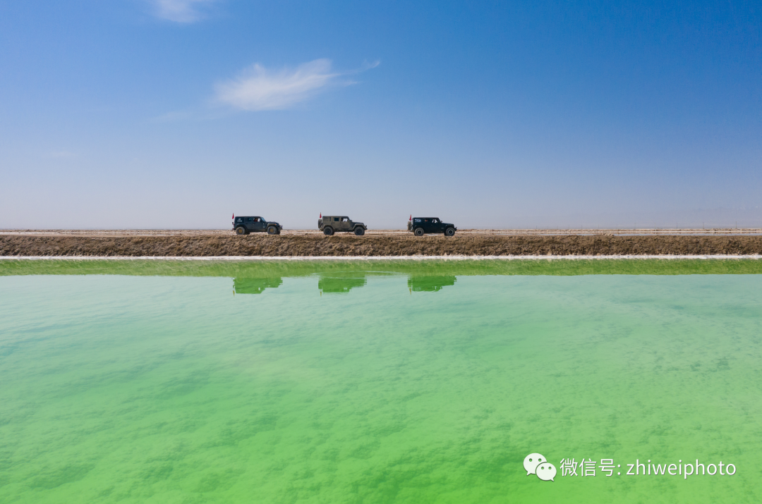 东台吉乃尔湖,湖水呈现蒂法尼蓝,而盐结晶形成了“白色沙滩”。于是这里有了新的代名词——“ 马尔代夫青海分夫”。 海西之所以成为网红路线,很大程度源于东台吉乃尔湖的这抹蓝色。
