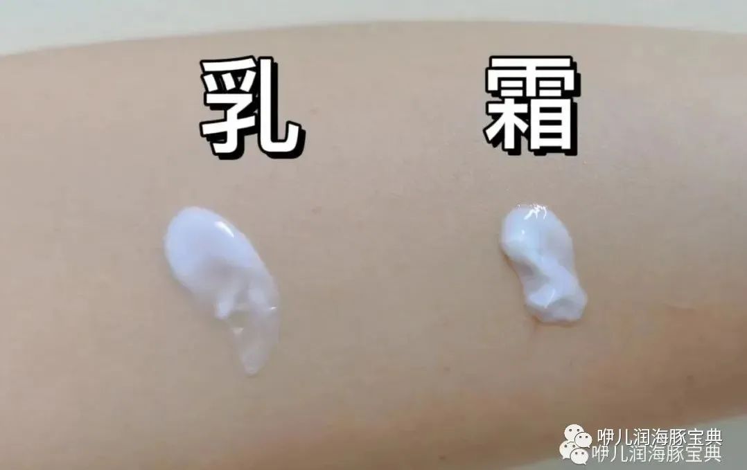 乳液:乳液也是水和油混合,经过乳化形成。和霜相比,含水量更多一些。因此更容易涂抹开,吸收更快。可以用于毛发较多部位的保湿和夏季使用。