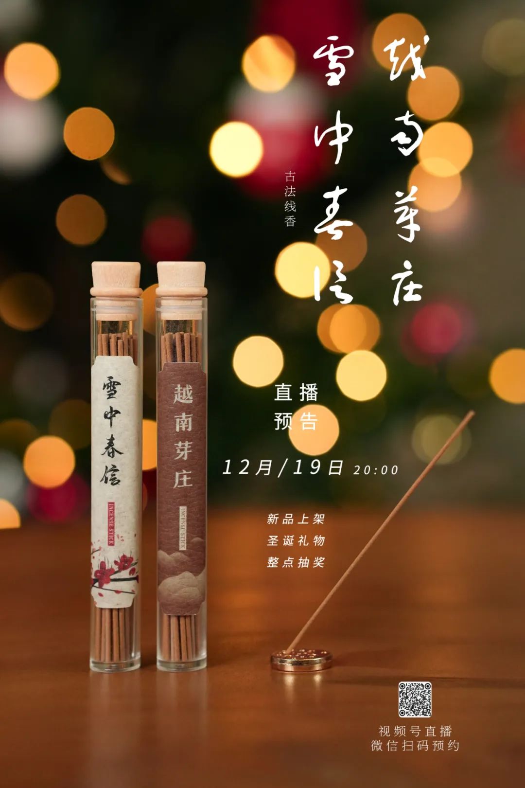 这次推出越南芽庄和雪中春信两款线香,致敬曾经引领世界潮流的中国香文化,也分享我们在合香与焚香过程中体验到的幸福感,无论是静坐、写字、瑜伽、画画、听音乐、与一二好友倾谈,点一支香气,总会让我们和自己的内在、和周围的环境、和身边的人,有更美好的连接。