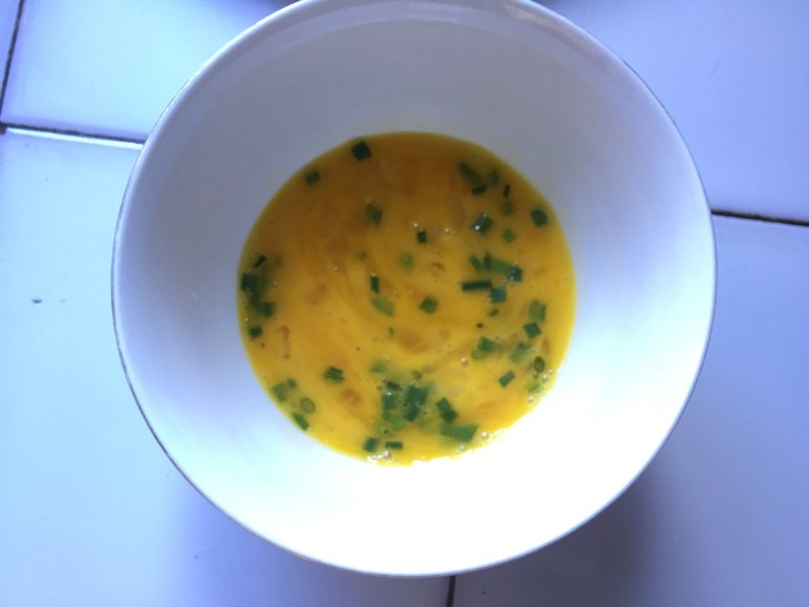 4、将鸡蛋打散,放入盐和香葱