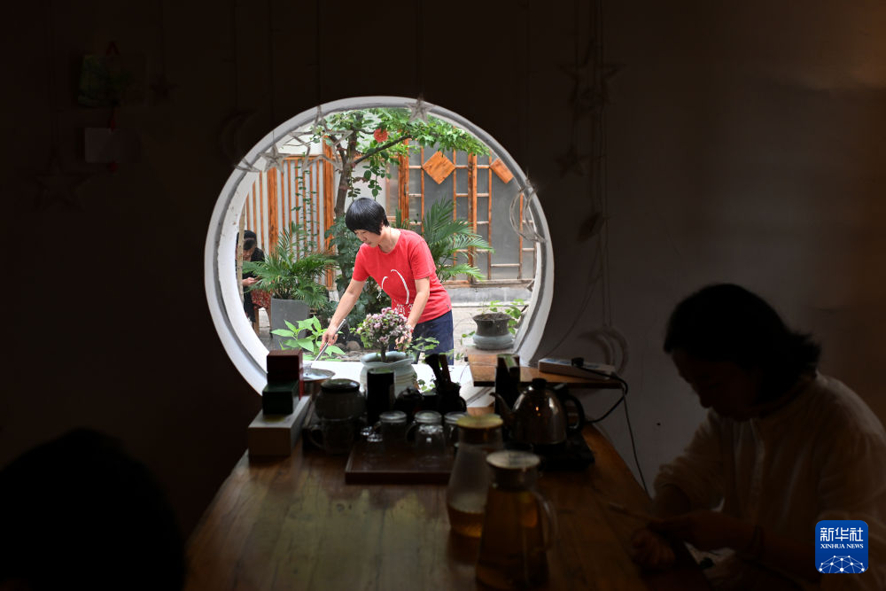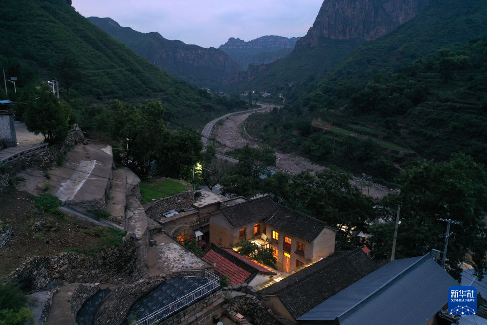 山西省平顺县榔树园村里的魏美玲将老房子改造而成的民宿(无人机照片,7月24日摄)。