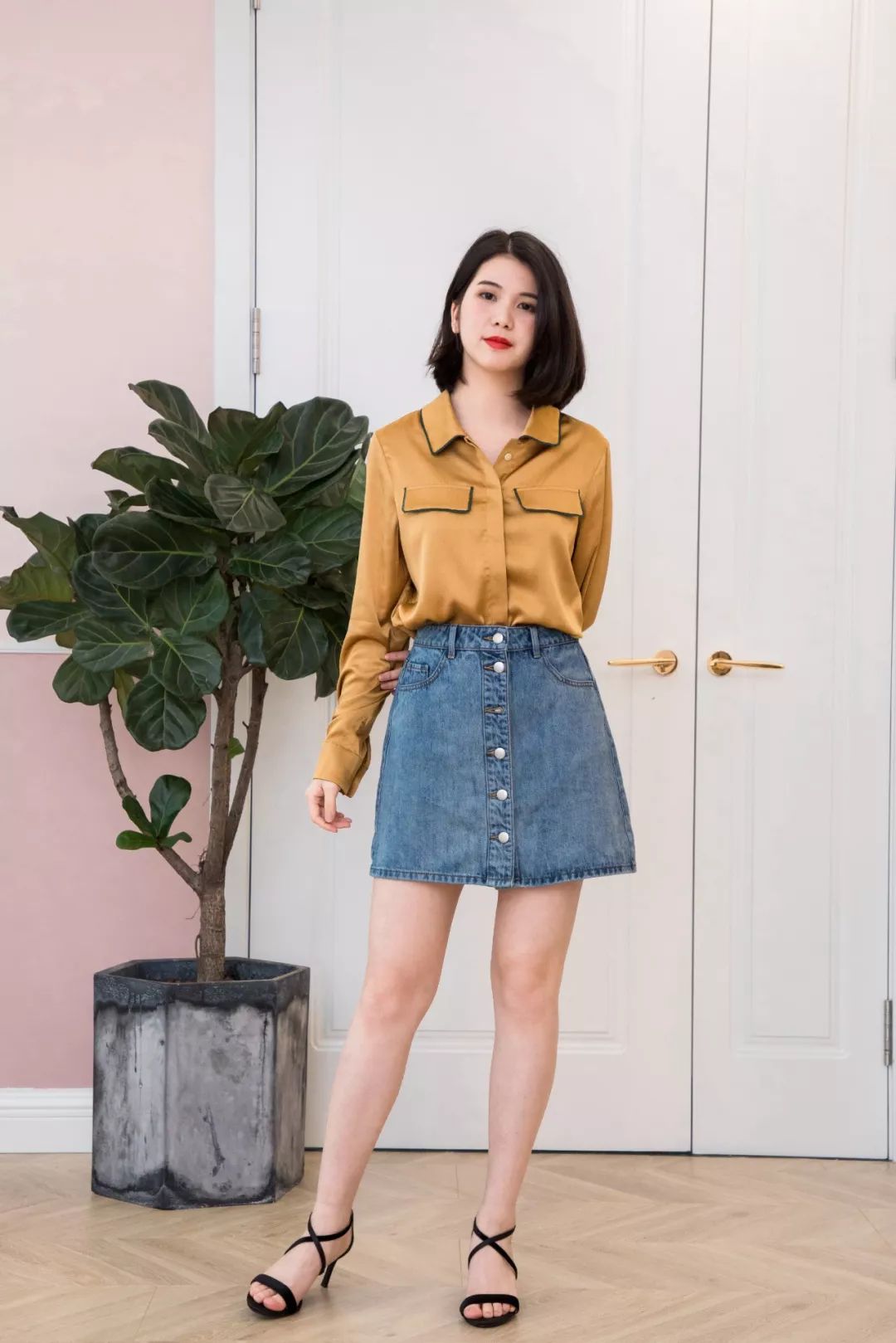 阿梦有个很大的优势是腿细,这次毫不犹豫地搭配了一条A字的牛仔短裙,还蛮减龄的。▼