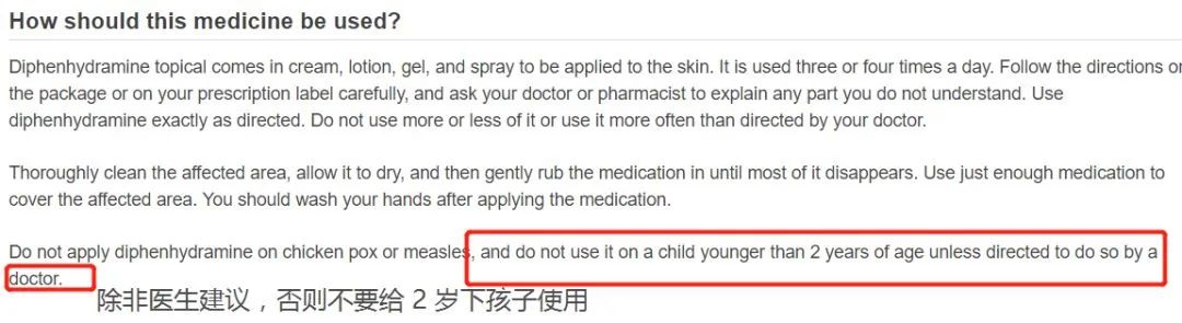 儿童版里面保留的「苯海拉明」虽能减少组胺引起的痒,但局部使用就可能导致中枢抑制。