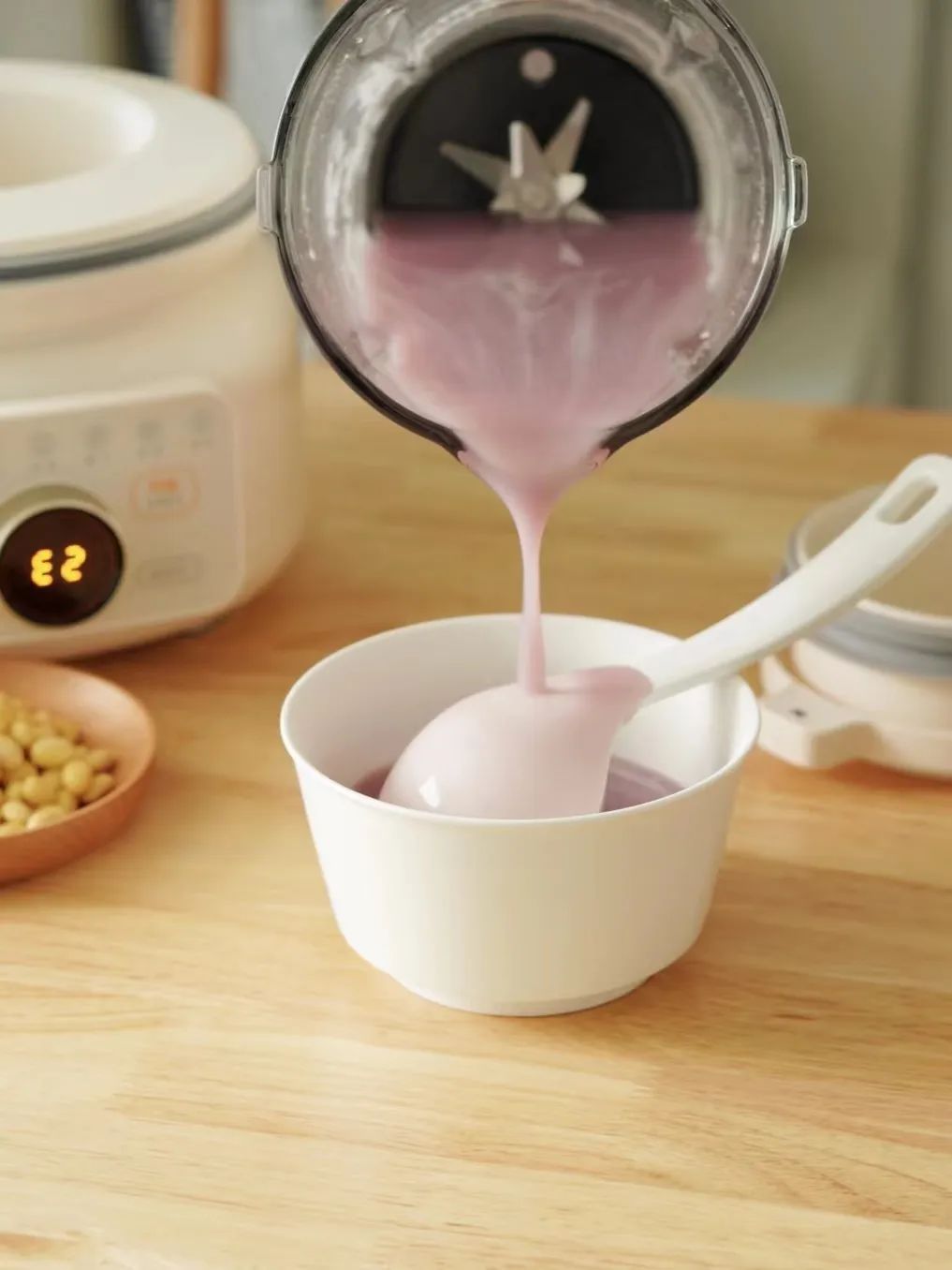 它不需要提前一夜泡豆子,燥热潮湿的南方夜晚,久泡容易不新鲜。破壁机直接干豆直打,喝着不卡喉,口感非常丝滑细腻。