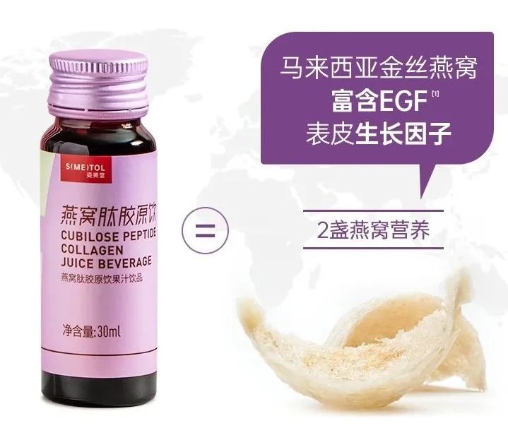 1. 富含燕窝:每瓶约添加2瓶马来西亚金丝燕窝EGF表皮生长因子