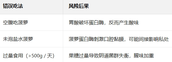 维生素 C 魔法:菠萝维 C 含量是苹果的 5 倍,能调节阴道 pH 值至弱酸性(3.8-4.5),抑制异味菌繁殖