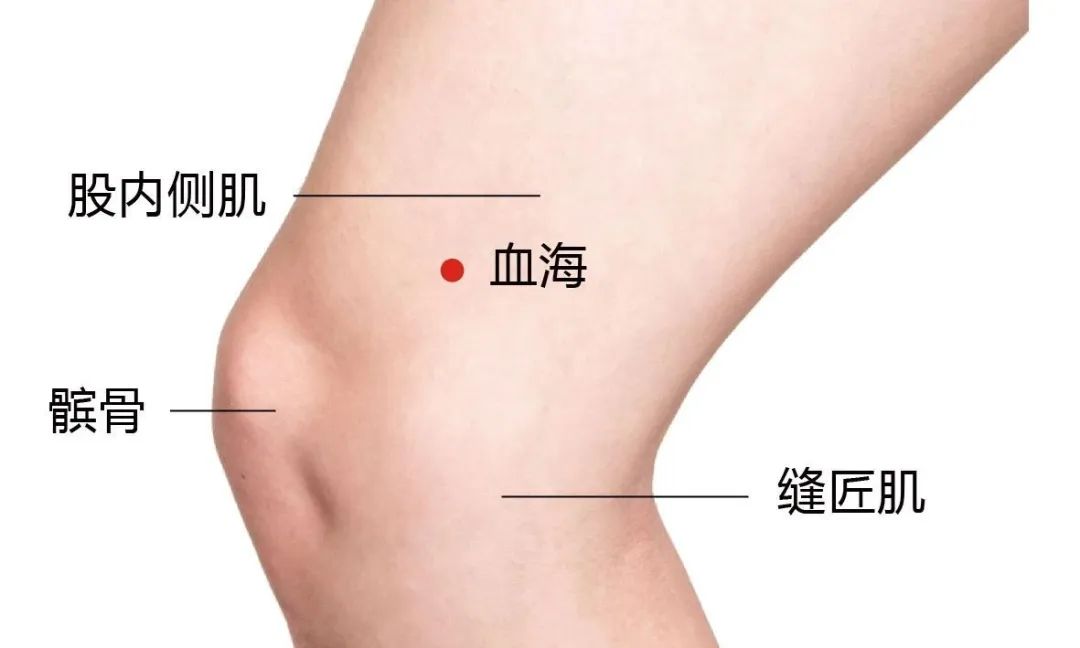 2、血海:穴如其名,血海是脾血汇聚之海,具有散淤血、生新血的功效,堪称女子的生血之海。