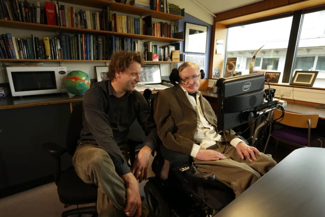 比利时宇宙学家托马斯 · 赫托格(左)在读博士期间和导师霍金的合照(受访者供图)