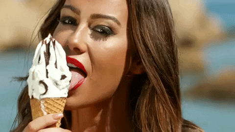将果冻般的樱桃小嘴对准冰激凌,用一只手或者双手辅助,舌尖左一圈右一圈,左两圈右两圈,左三圈右三圈......由慢到快再由快到慢,你也可以亲亲它,然后欣赏美味的冰激凌在你手中融化~