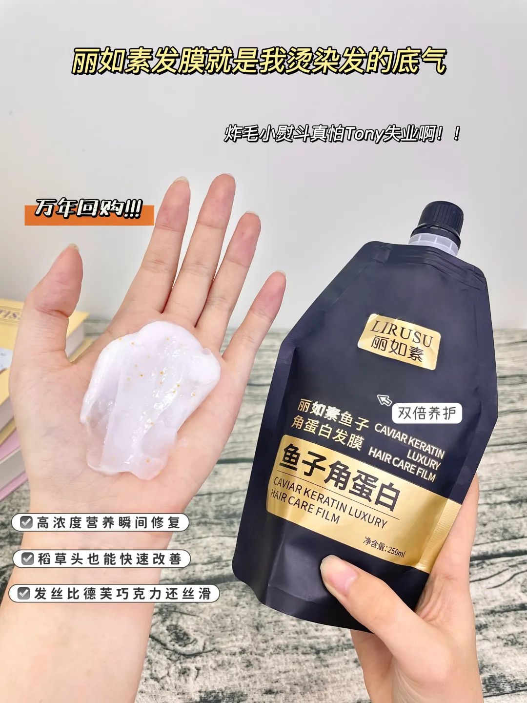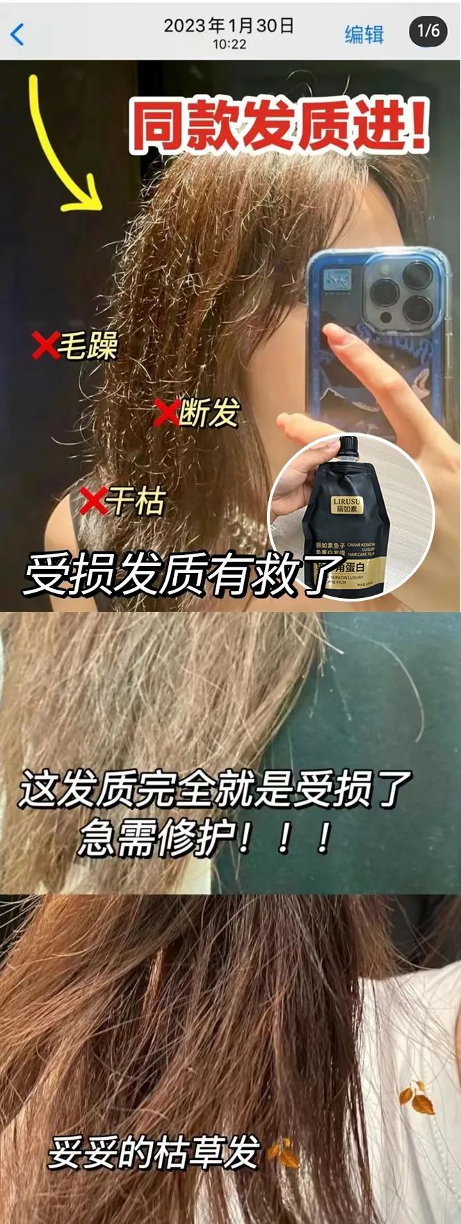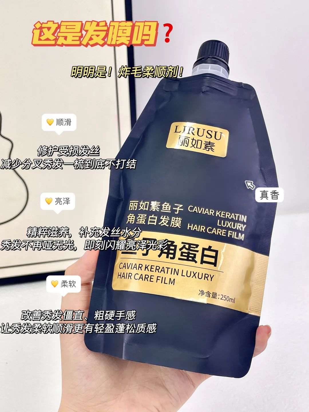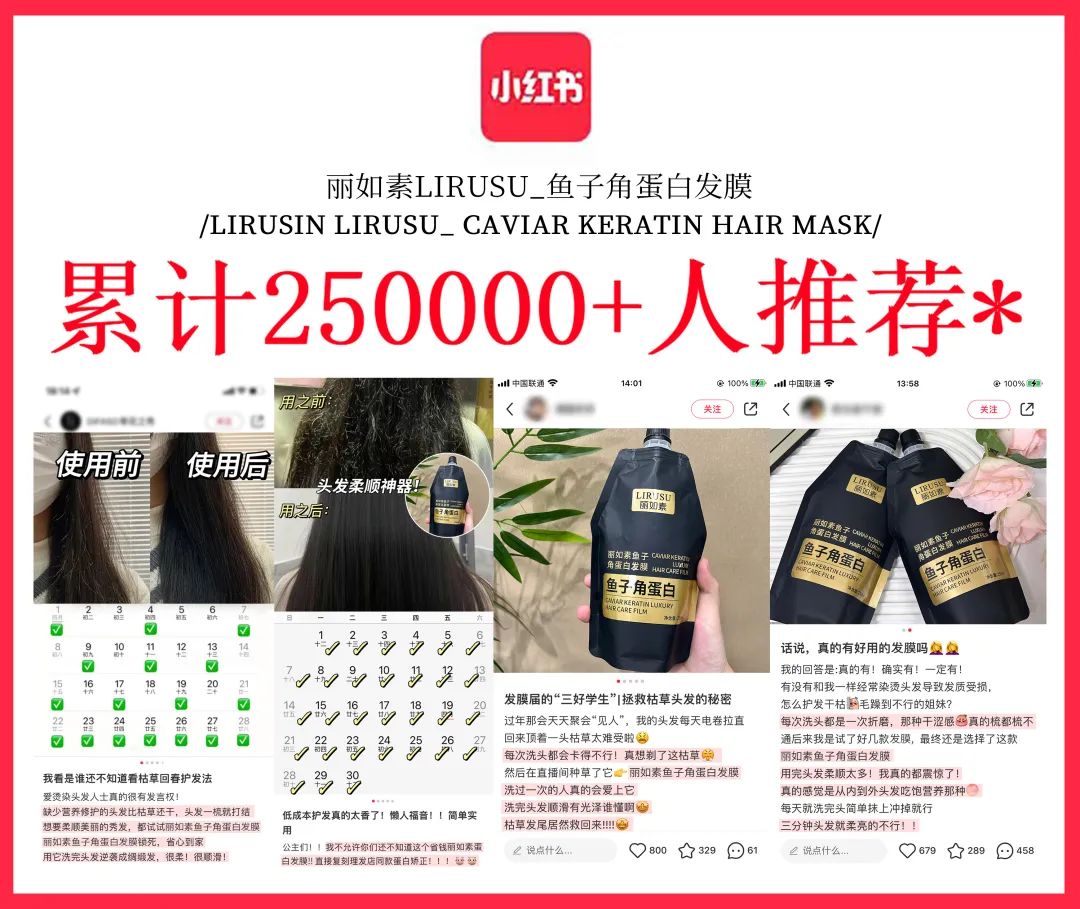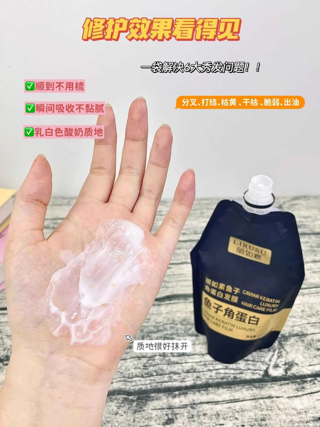 这款【丽如素LIRUSU_鱼子角蛋白发膜】用一次就能看到明显的效果!