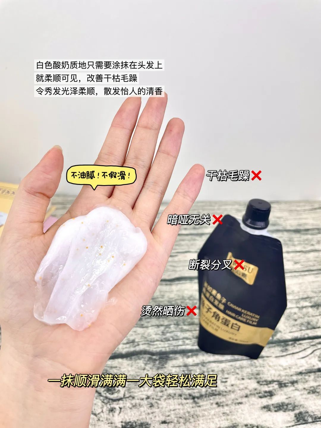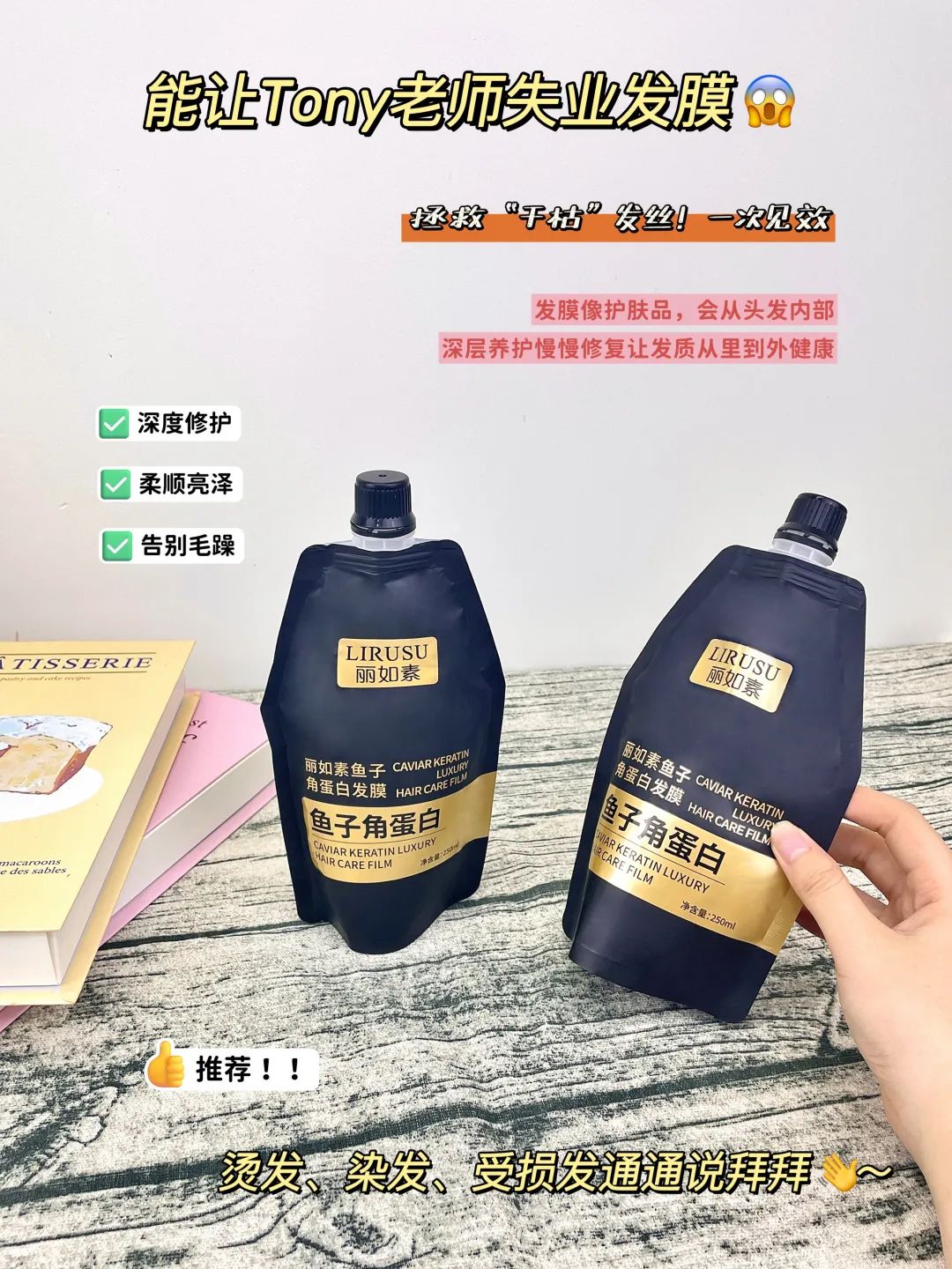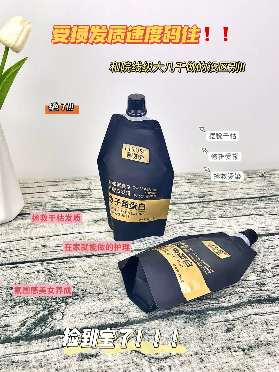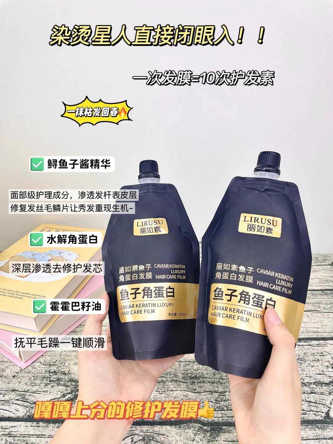 这款【丽如素LIRUSU_鱼子角蛋白发膜】用一次就能看到明显的效果!