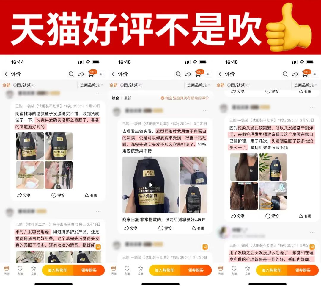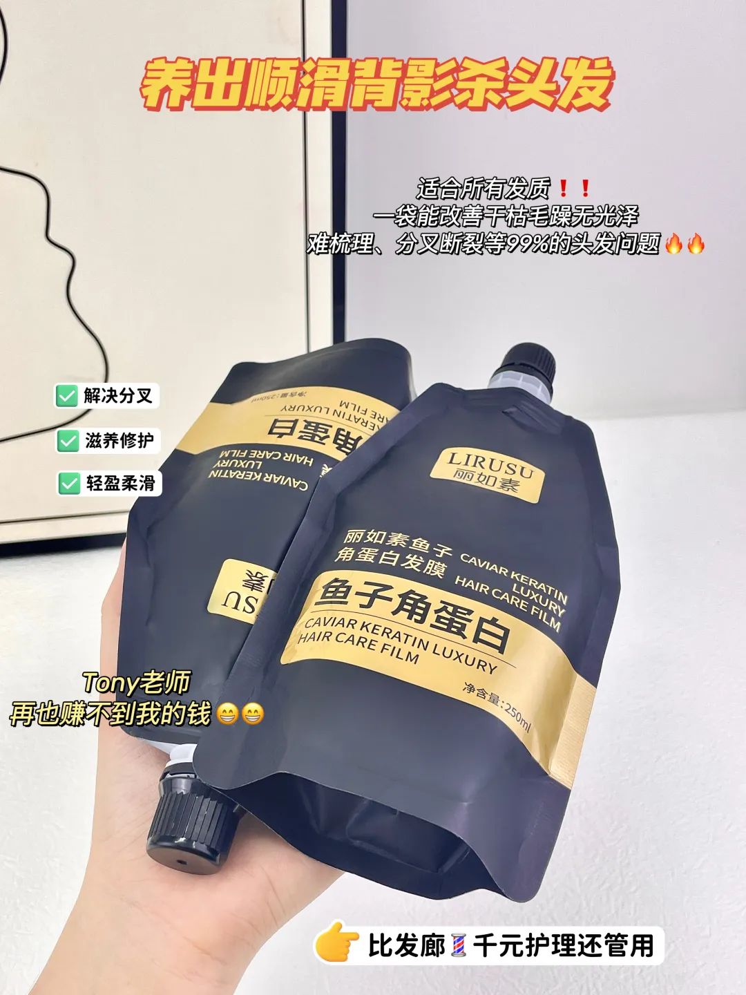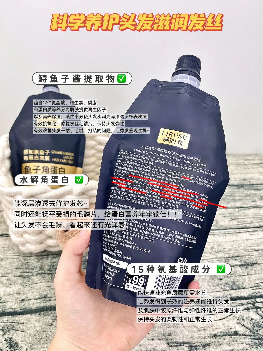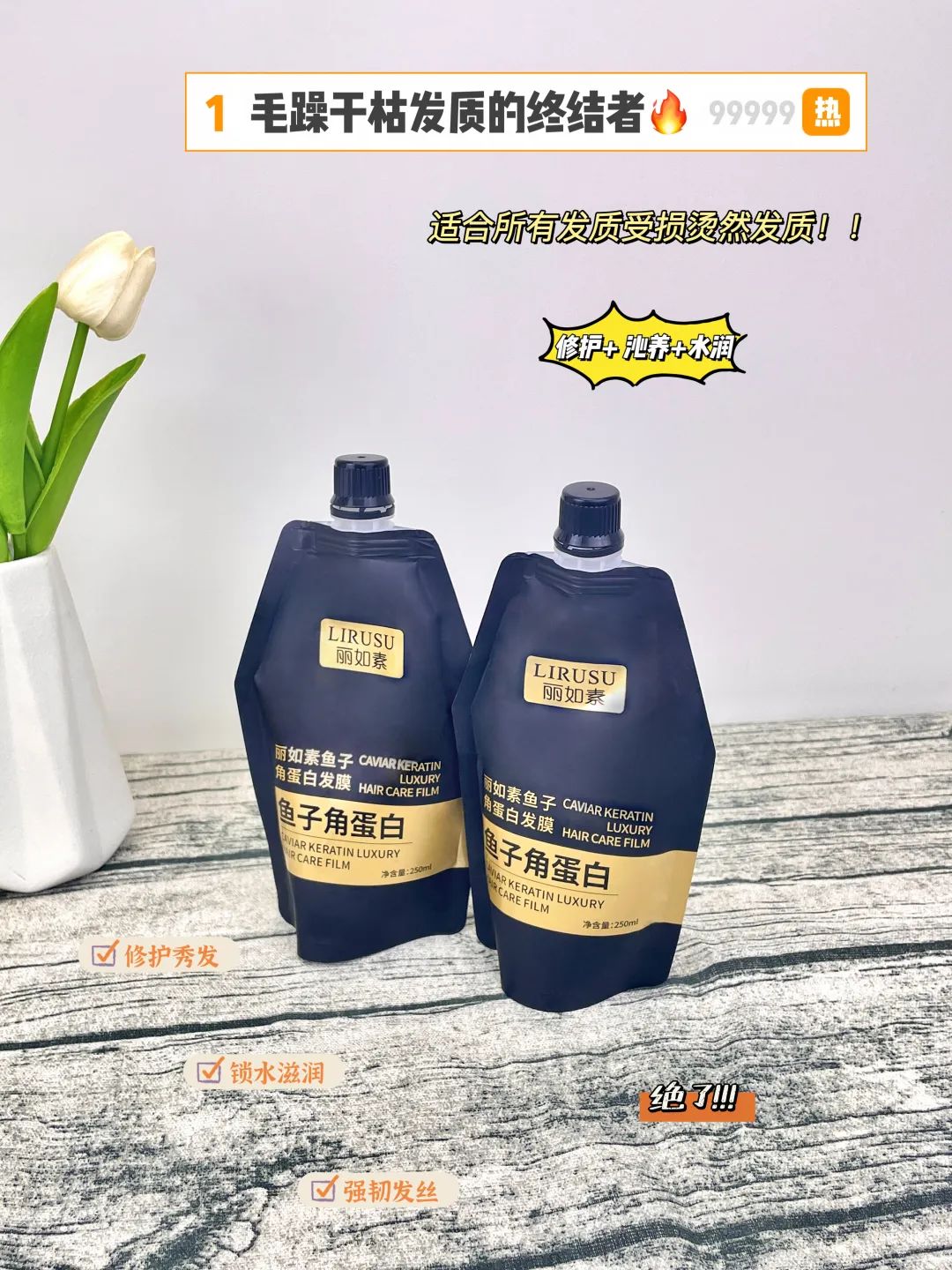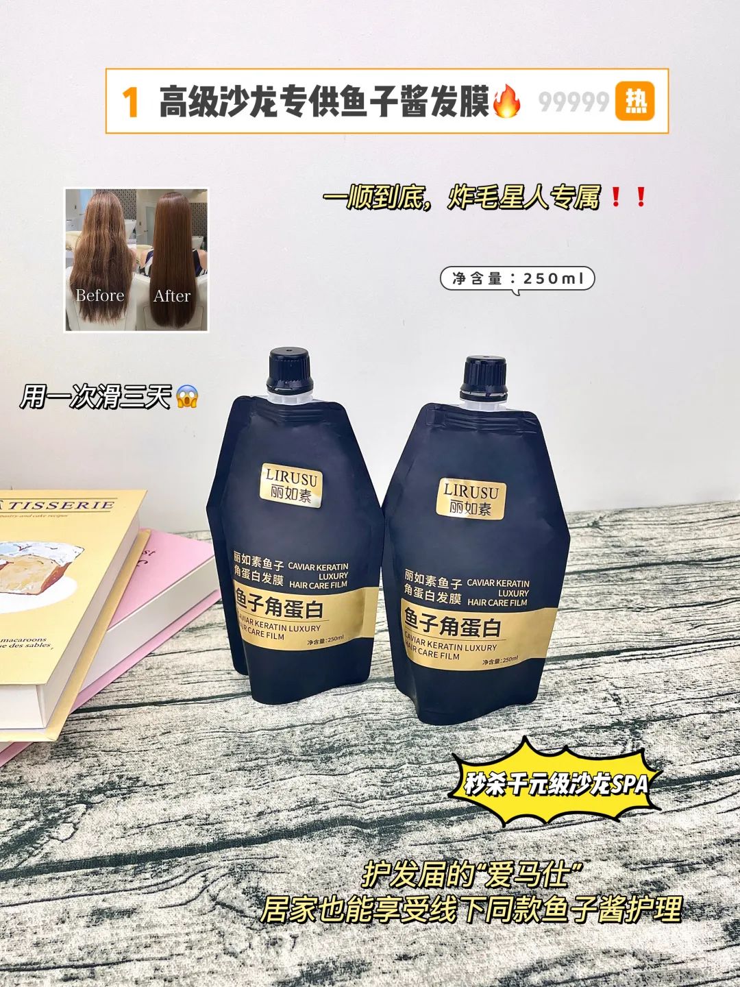 这款【丽如素LIRUSU_鱼子角蛋白发膜】用一次就能看到明显的效果!