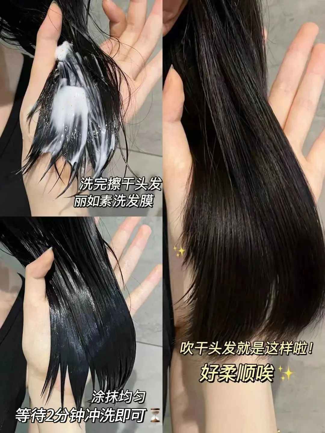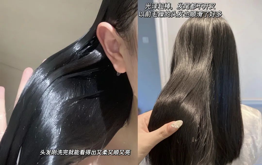 在冲洗💦的过程中,你就能明显感觉到头发变得超级柔顺,水流像是滑楼梯似的,顺着头发直流而下。
