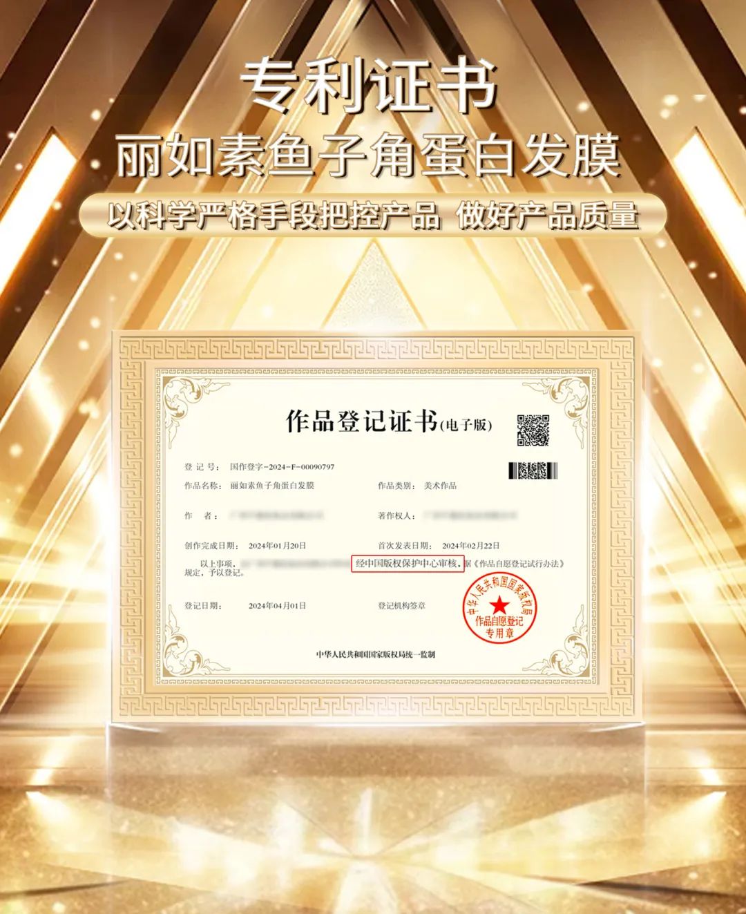 丽如素LIRUSU鱼子角蛋白发膜,经过中国版权保护中心的严格审核,成功获得版权登记。