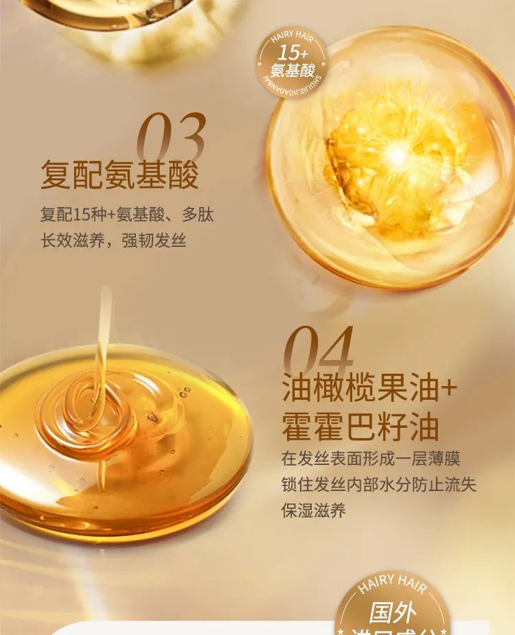 渗透发杆表皮层,有效抗氧化,修复发丝毛鳞片,保持头发弹性,有效改善头发干枯、毛糙、打结的问题,让秀发重现生机~