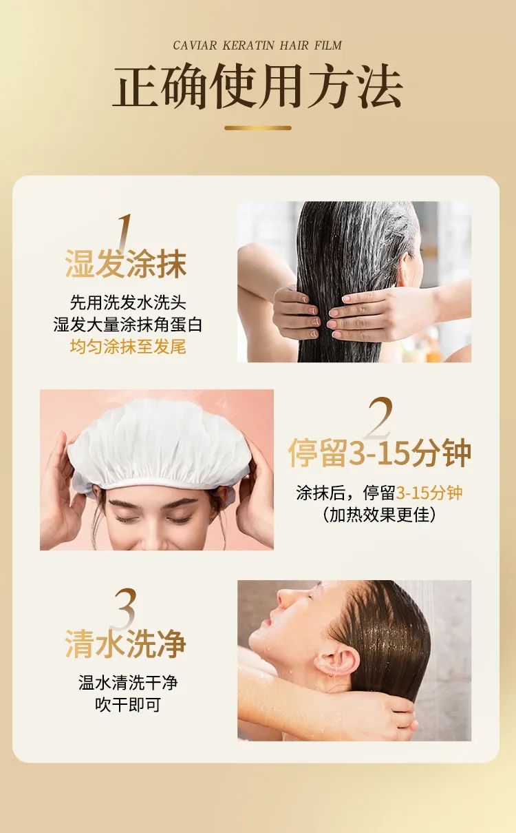 这是告别传统发膜,不需要搭配蒸汽帽漫长的等、免蒸可快速清洗的鱼子角蛋白发膜!
