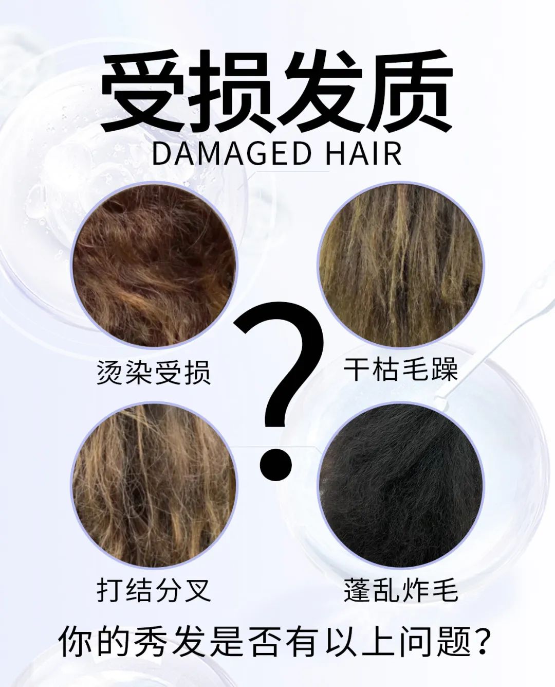 秀发损伤随时都在积累发生,慢慢秀发出现了干枯毛躁、蓬乱炸毛、暗淡无光、打结分叉、染烫断裂等问题!