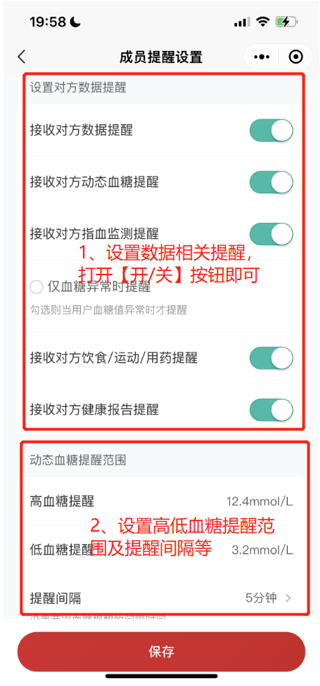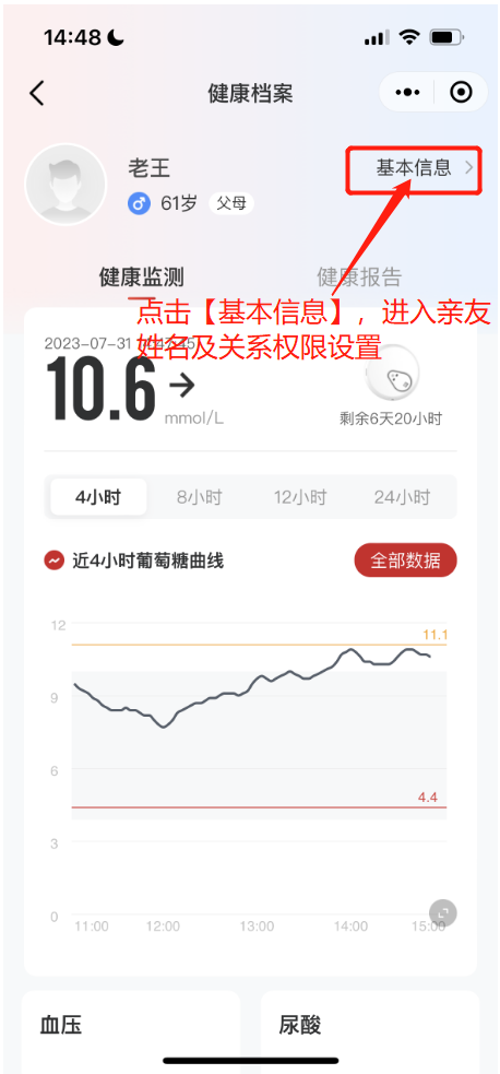 当亲友之间实现血糖同步分享之后,家庭成员之间可实现血糖监测双向管理,那么家庭成员的基本信息:如亲友关系以及相关数据提醒如何设置呢?