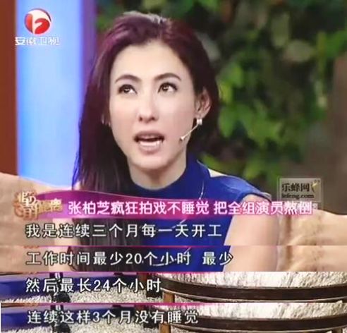 张柏芝在电视节目中坦言:曾拍戏三个月不睡觉,熬垮了整个剧组,工作人员为了让她睡觉,一度想在她水里下了安眠药。