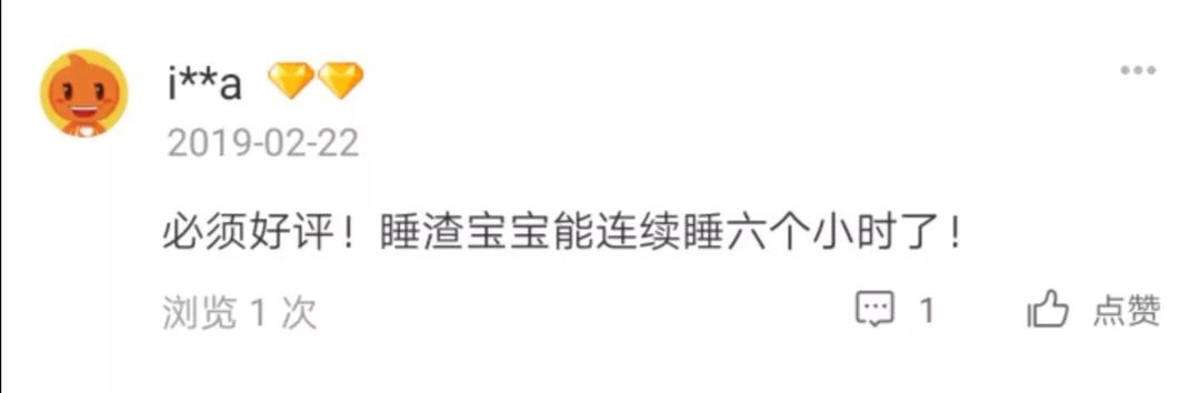 看到他们,就像看到了希望,产品的评价里面像这样的因宝宝睡眠改善而开心的妈妈数不胜数。