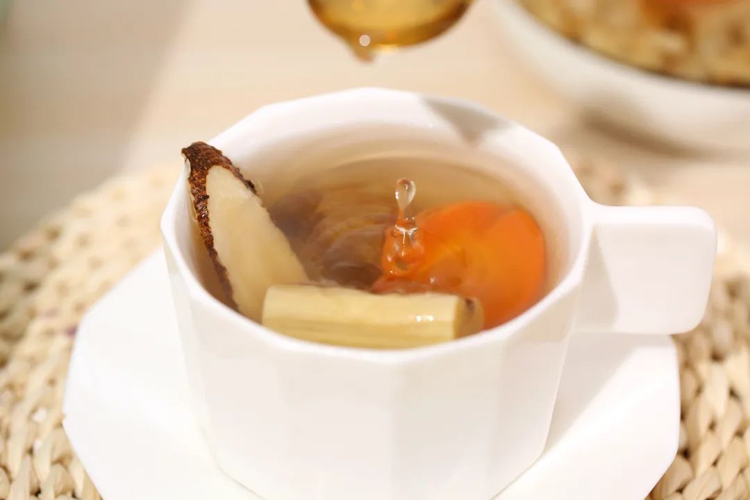 食材上除了竹甘蔗、白茅根、马蹄、胡萝卜之外,还额外添加了雪梨干、无花果、蜜枣、甘草。