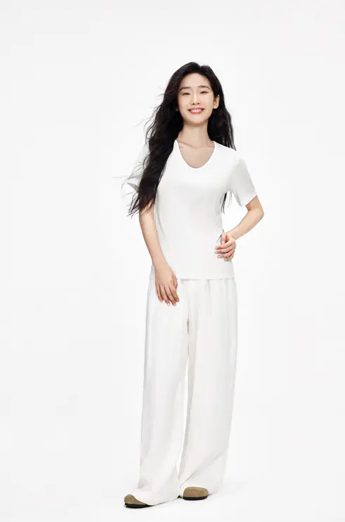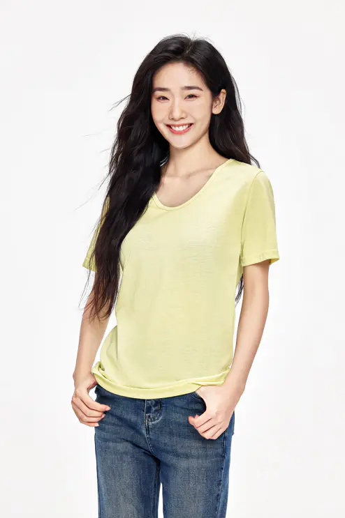 雪花棉面料轻薄透气,随便搭配个牛仔裤很舒服,自带松弛的氛围感~