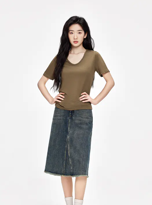 很舒服的V领雪花t,夏天只想焊在身上!!大V领真的很有慵懒感!