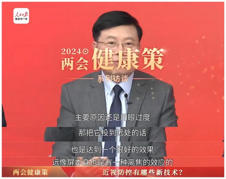 2024年3月6日,由人民日报健康客户端主办的2024年全国两会特别策划——《两会健康策》主题直播播出。教育部全国综合防控儿童青少年近视专家宣讲团团长、中华医学会眼科学分会副主任委员瞿佳教授,中山眼科中心屈光与青少年近视专科主任医师曾骏文教授,围绕“儿童青少年近视防控新技术”展开探讨。