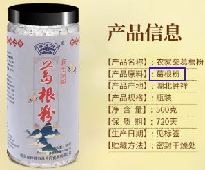 区别与市场上其他添加过各种添加剂的葛根粉,它的配料表干干净净——只有纯纯的葛根粉。