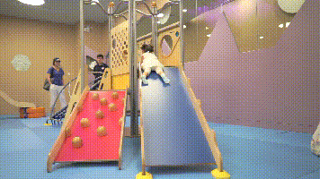 锻炼身体,滑个滑梯~看看我独创的趴地式滑梯法,棒!
