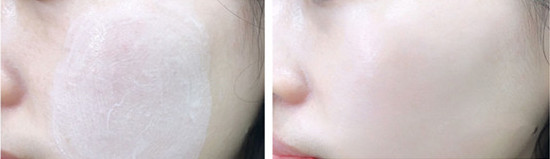 涂抹在脸上非常轻薄、成膜很快