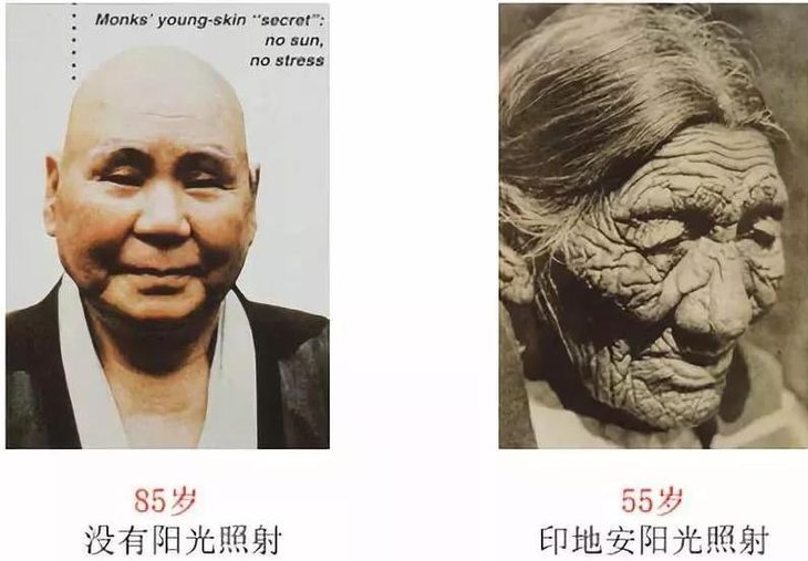 下图的85岁没晒阳光和