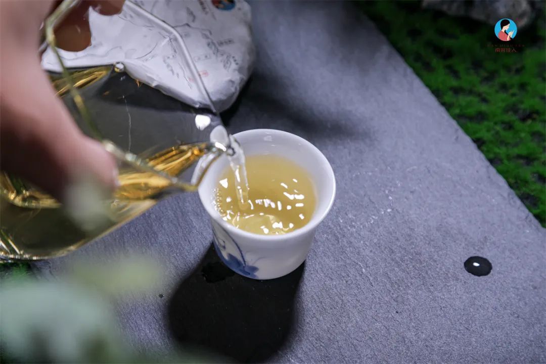 倒出黄亮澄澈的茶汤,热气中清幽浪漫的花蜜香扬起。