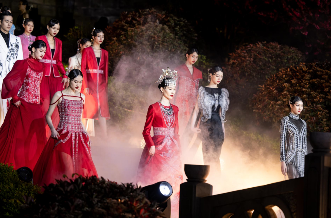 EVE CHINA HANDICRAFTMANSHIP 2023 EVE CHINA HANDICRAFTMANSHIP 4月6日机杼声的奏响“苗韵时尚·绣梦贵州”时尚大秀在第十七届贵州旅发大会的舞台上闪耀启幕 依文·中国手工坊将一段关于“贵绣”的传承故事缓缓道来让无数贵州深山手艺人的梦想被点亮 苗族鱼纹、蝴蝶纹缓缓绽放,来自贵州的绣娘们用最质朴的方式诉说着传承的印记,身着EVE CINA“贵绣”高级定制系列礼服的模特踏歌而来,在旅发大会的舞台上亮相——融合苗绣、锡锈、钉珠绣等传统手工艺术的时尚华服,折射出贵州多彩的民族文化与美学故事,展现着时尚设计理念里的民族文明与记忆。 EVE CHINA HANDICRAFTMANSHIP 2023一段独白,讲述一群人的梦想 “我是贵州苗族绣娘潘玉珍,今年 77 岁了,从小就学习绣花。在过去的十几年里,我带着家乡姐妹们绣的作品,跟着依文集团走进了英国、法国、北京、上海......通过深山集市的平台,让大家靠绣花赚钱,我们一年最多能赚 184 万。 现在,我们的女儿、同乡的姐妹,都回到了家乡开始靠绣花赚钱!未来,我们要把历史和世代流传下来的故事绣在衣裙上,讲给孩子们听,讲给世界听,我们的苗绣越来越美,日子越过越好!” 古老的苗族歌谣响起,依文·中国手工坊签约绣娘潘玉珍走向舞台,用一段独白讲述了她的绣梦人生,用朴素的语言表达了贵州地区世代传承的匠心情怀,也诠释了“指尖产业”带给深山手艺人的无限机遇。 EVE CHINA HANDICRAFTMANSHIP 2023打造“贵绣”指尖产业、文旅产业提升贵州省乡村振兴“加速度” 依文集团设计师团队用十九年的时间,深入贵州省多个县域地区,对当地民族美学元素进行收录、提取、整合、创新性再设计,打造了民族美学纹样数据库、贵州手艺人数据库;多次深入贵阳、贞丰、望谟、册亨、纳雍等地,对当地上万名绣娘进行指尖产业标准化订单式培训、输送近千万元的手工订单,让她们的手艺能够有效链接国际市场,实现劳动创收、脱离贫困、走向富裕。 未来,依文集团将不断汇集全球设计师、美学创作者走进贵州,与贵州不同地区、不同民族的手艺人共同创作,以时尚设计、数字科技的力量打造“贵绣”系列高定礼服、鞋服、潮玩、家居、文创等多类目的时尚爆品,以品牌化、IP化、时尚化、国际化、产业化的方式打造“贵绣”指尖产业、时尚产业。