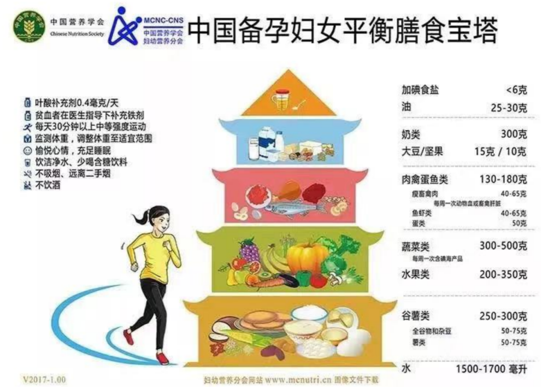 说到备孕的饮食,首先放平心态,不要盲目的为了补而补,先做到普通人的健康饮食,什么都吃点别挑食,营养均衡,种类多样。优质蛋白,水果蔬菜,碳水化合物都是少不了的,但不能过量。(膳食宝塔,可以在每日的饮食中参考一下。)