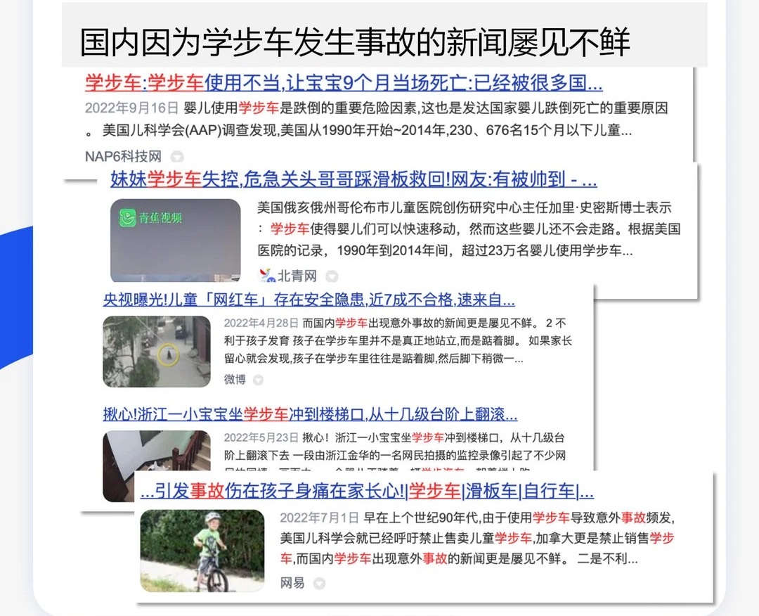 学步车赋予婴儿远超其能力的活动范围,每秒移动速度可达1米,但婴儿头部占比较大且暴露在外,一旦碰撞障碍物或跌落楼梯,极易造成头部外伤、骨折甚至致命伤害。
