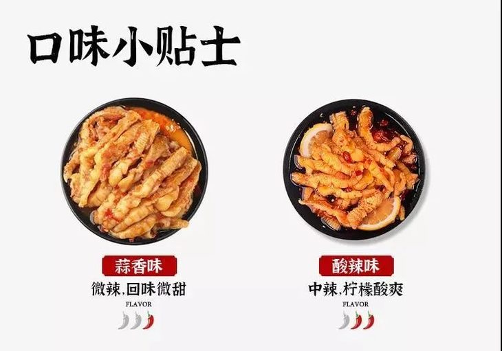 蒜香味:辛香蒜蓉给料十足,给鸡爪的辣味增添了一份辛辣。入口即上头,原来大蒜还可以这么好吃!