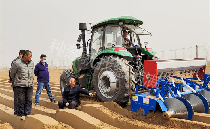 整好地以后,就可以着手进行开沟了。常规开沟都是使用开沟机进行开沟,设定好行距和沟深直接操作即可。