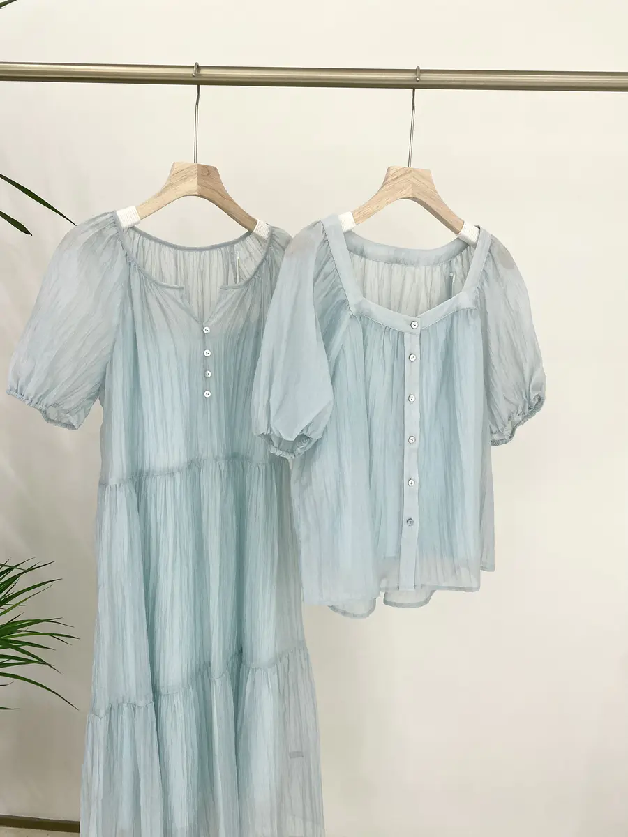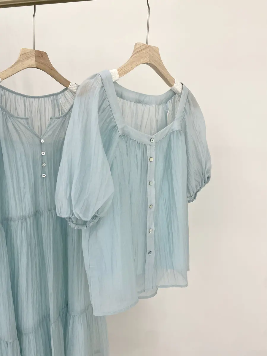 舒适的莱赛尔混纺料子,因为颜色太美丽,所以开了两款单品,实物的颜色其实是有点蓝绿色调感,清透的蓝,带点暖调的绿,非常夏天,给人一种在很炎热的天气,冲进冷饮店,喝了一杯加冰加薄荷的冷饮一般