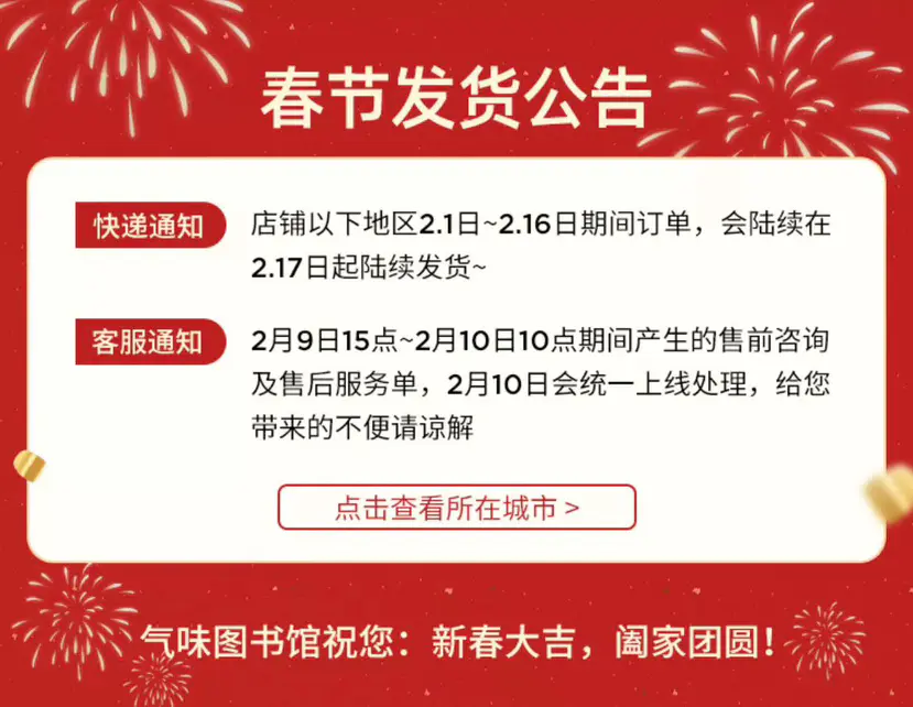 BABY~新年到来之际,祝各位小伙伴们新年快乐~~新的一年,气味图书馆祝您新春快乐,身体健康~