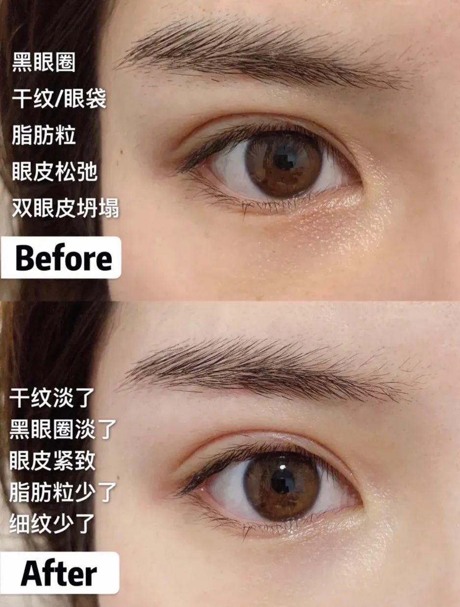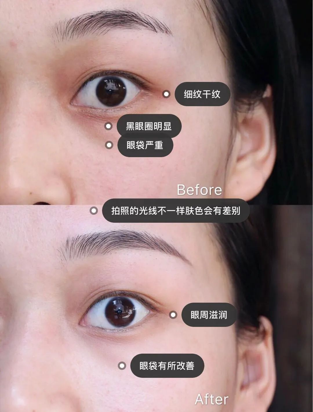 而且,使用时不需要乳化,不会有黏腻的感觉,不用大力拉扯拍打眼周肌肤,从而直接避免了脂肪粒的生成。