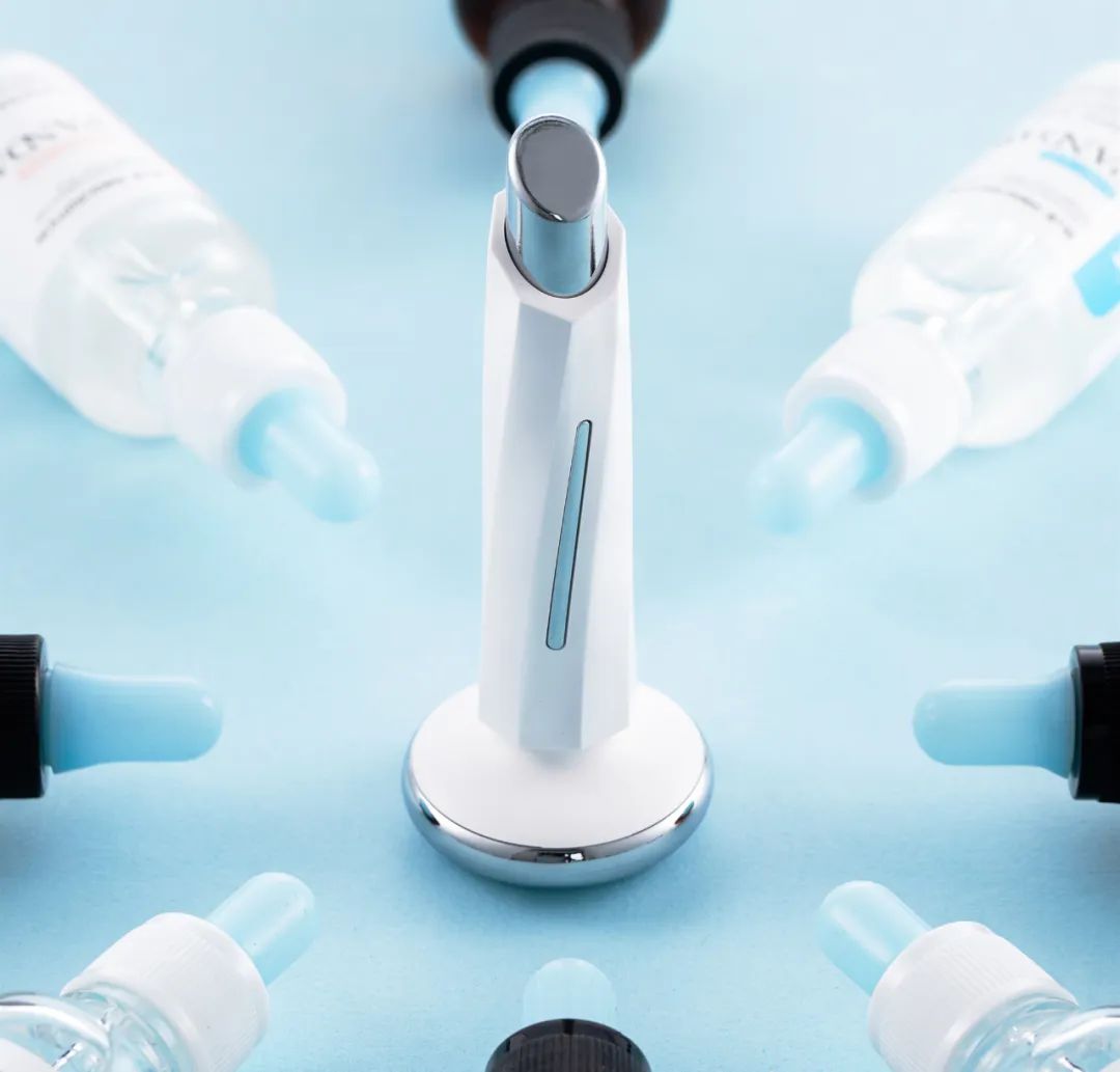 这款导入仪,是利用磁力导入技术,通过高频振动,将精华导入肌底,帮助护肤品更好更快的被肌肤吸收。