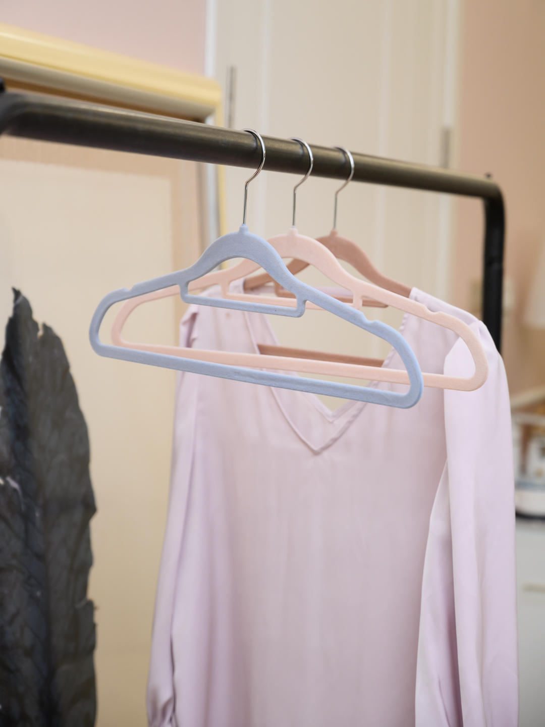 换衣柜是不可能的,我又贪心想要一劳永逸的整理方法。TK说简单,能挂就别叠,然后塞我几个StorageWork的植绒衣架。