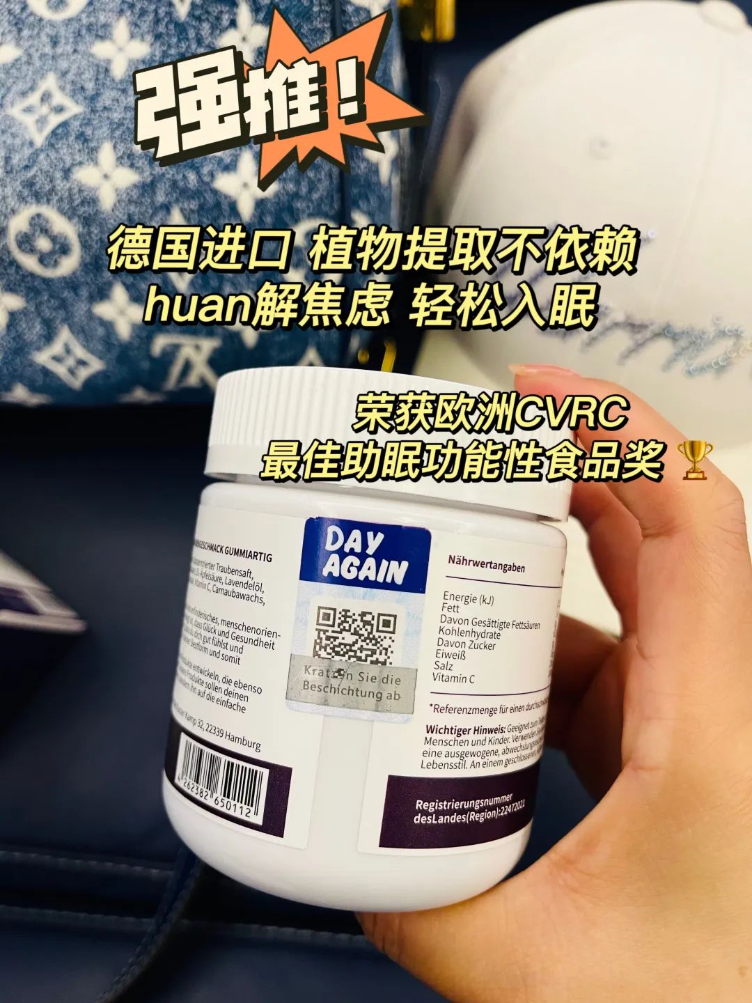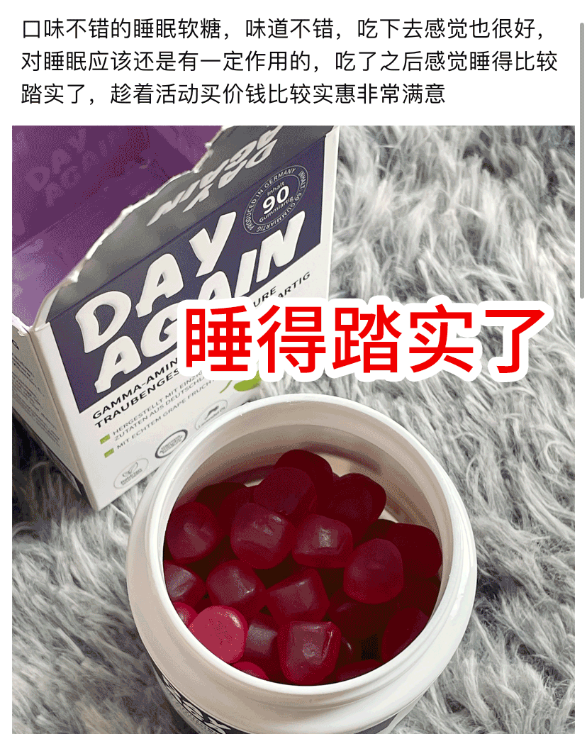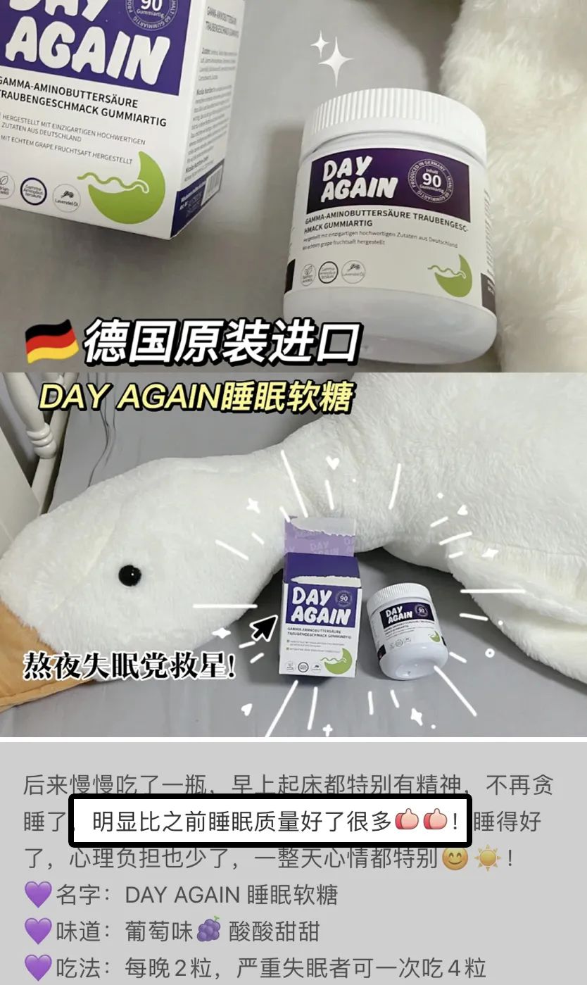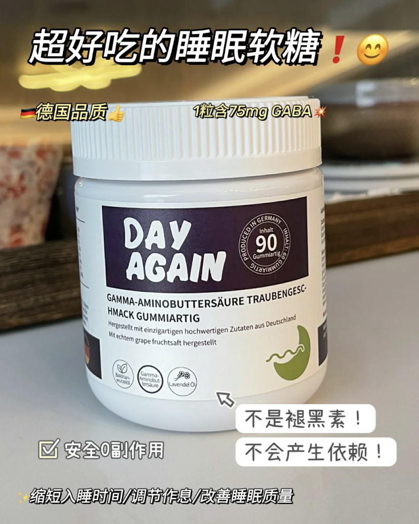就是这瓶德国DAY AGAIN睡眠软糖,不论是成分口感还是效果,在同行中可谓是能当爹的好物!熬夜冠军们必须要试试,五星推荐💥