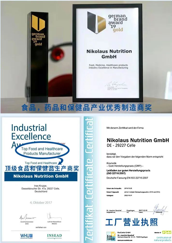先后获得《欧洲优秀食品和保健品生产商奖》,在食品、药品和保健品领域均处于先进制造水平,致力于以合理的价格提供高质量的食品补充剂。