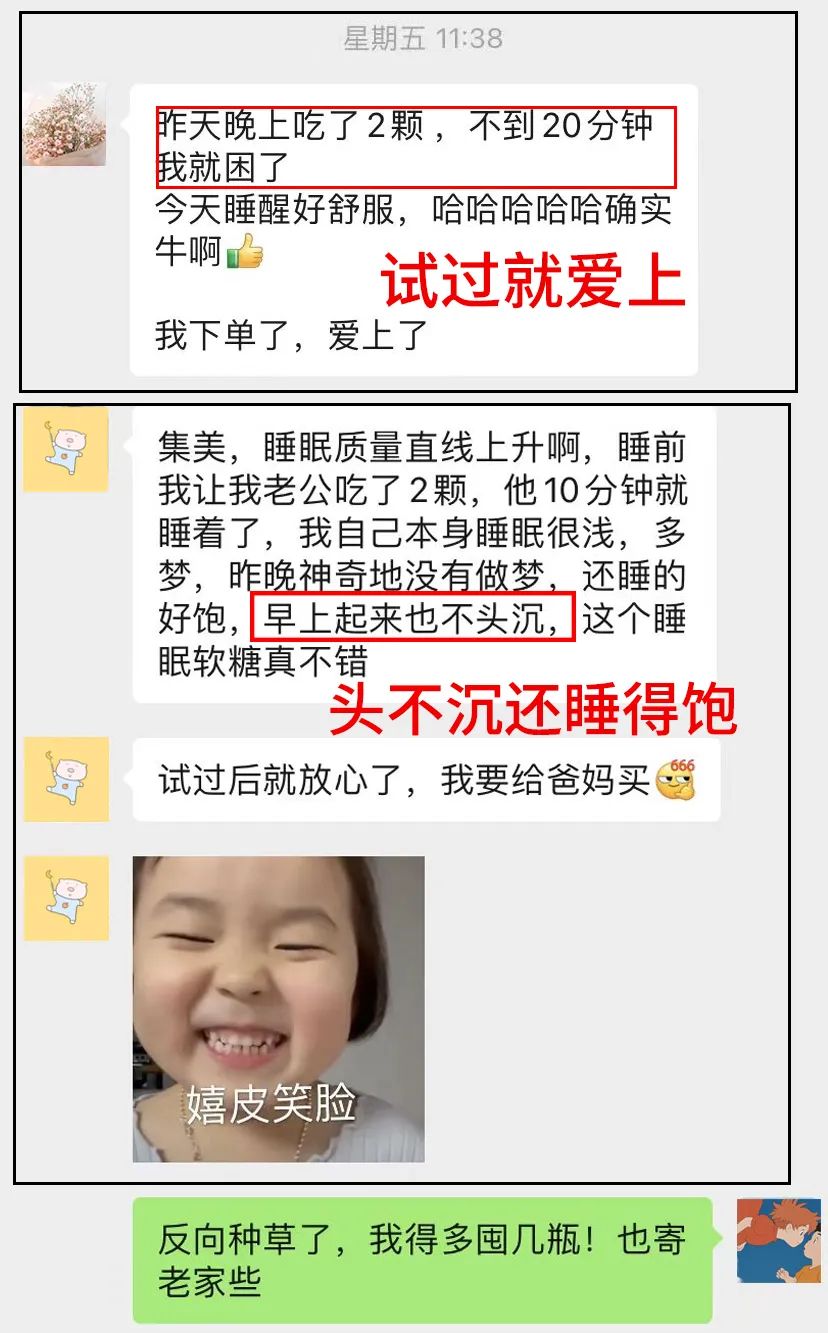 同事吃了之后也迅速给了好评:“吃完躺下立即困,入睡非常牛”“睡眠状态好很多!简直是救命神器!”