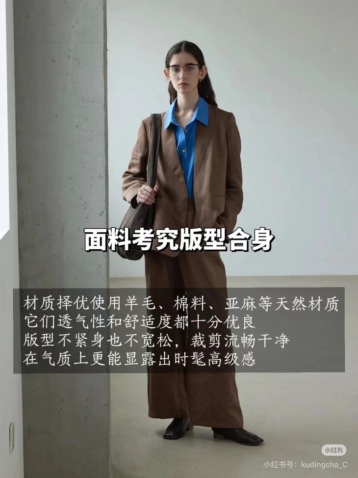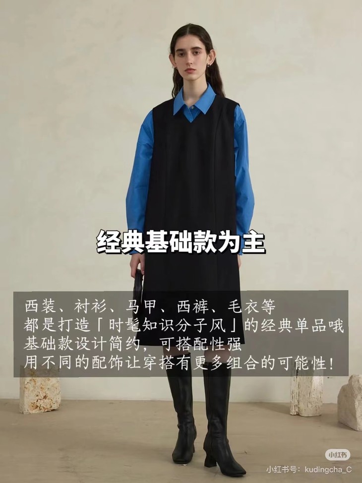 西装、衬衫、马甲、西裤、毛衣等都是打造「时髦知识分子风」的经典单品哦。基础款设计简约,可搭配性强,用不同的配饰让穿搭有更多组合的可能性!